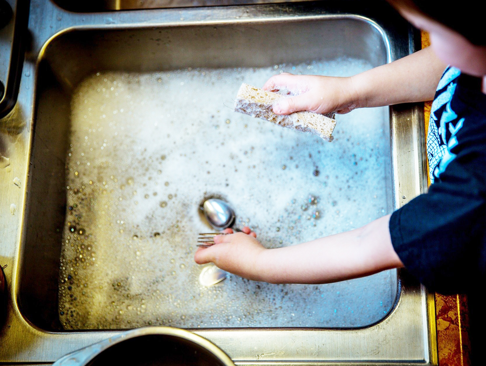 If your sink is made of brushed steel, scrub in the direction of the thin steel lines. This will make your sink last longer and help you clean it better.